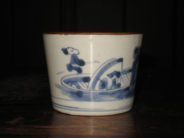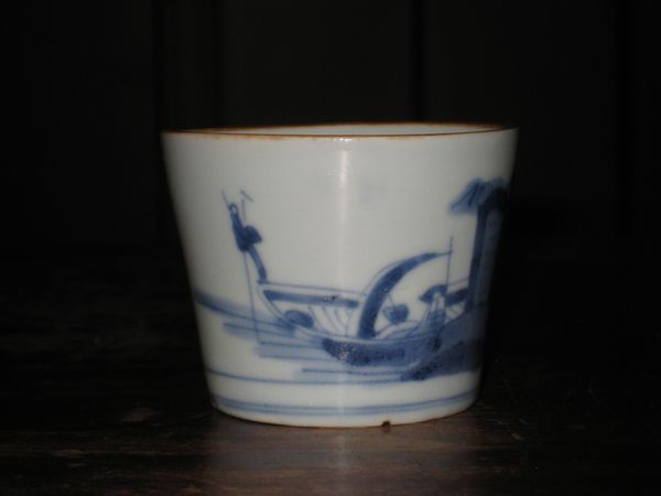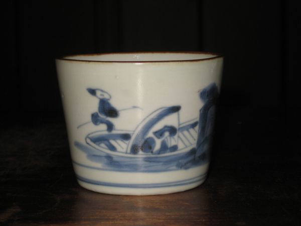 S-0374 舟人物 蕎麦猪口