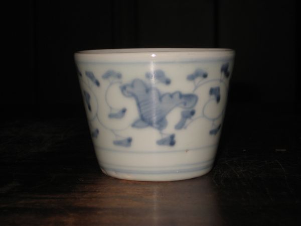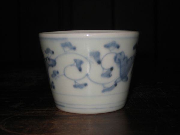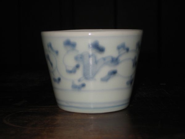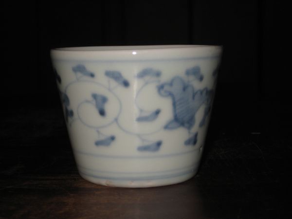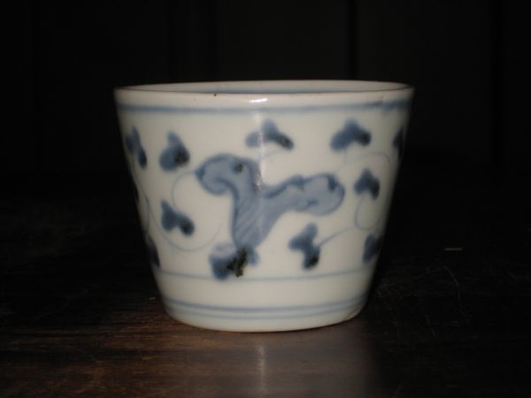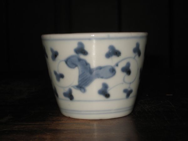 S-0395 詳細画像 その1 その2 その3 その4 その5 その6 S-0395 唐草文 蕎麦猪口 江戸後期 状態 無傷 全体的に,気持ち楕円です 窯傷・灰降り・釉薬抜けは,ご了承ください 価格1客 7,000円