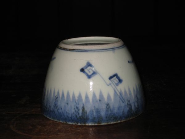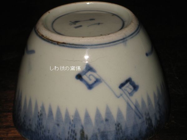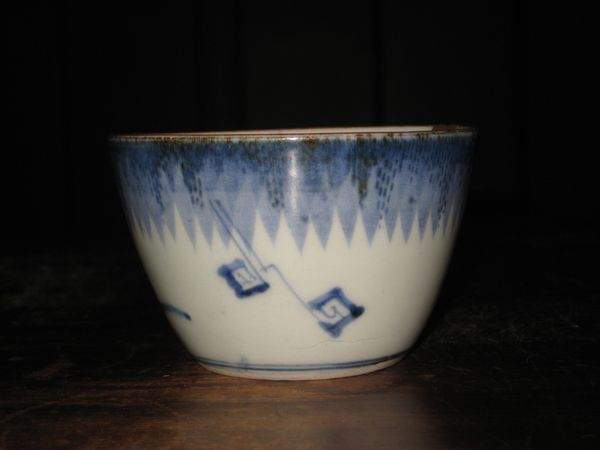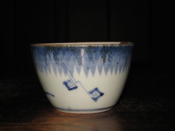 S-0401 詳細画像 その1 ご売約済みです その2 S-0401 雨降り雷文 蕎麦猪口 江戸中期 元禄〜享保期 状態 本金直し有り 口縁に本金直しがあります 真円ではありません,ガタツキが少々あります。 その2は,側面に窯傷あります(内側までは通っておりません) 価格1客 30,000円(その2) 送料無料 その1は,ご売約済みです お買い上げ頂き,ありがとうございました。