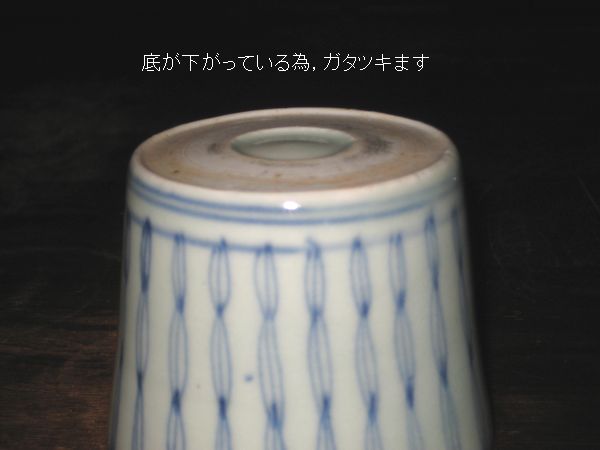 その3は,見込みに窯傷・釉薬抜けあります,真円ではありません,ガタツキあります